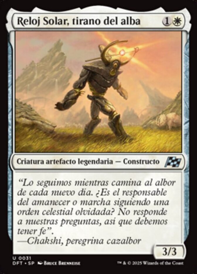 | Flavor | "We follow as it walks at the head of the ever-breaking day. Is it leading the dawn, or does it march to some forgotten celestial order? It does not answer our questions, so faith must sustain us." —Chakshi, Dawnchaser pilgrim |