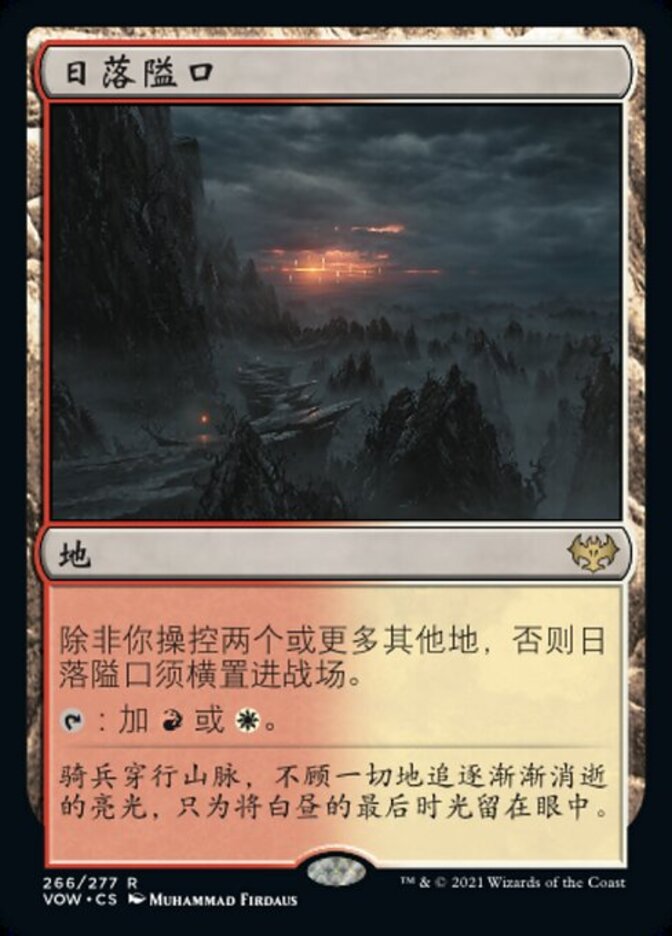 | Rules | Sundown Pass enters the battlefield tapped unless you control two or more other lands. : Add or . |