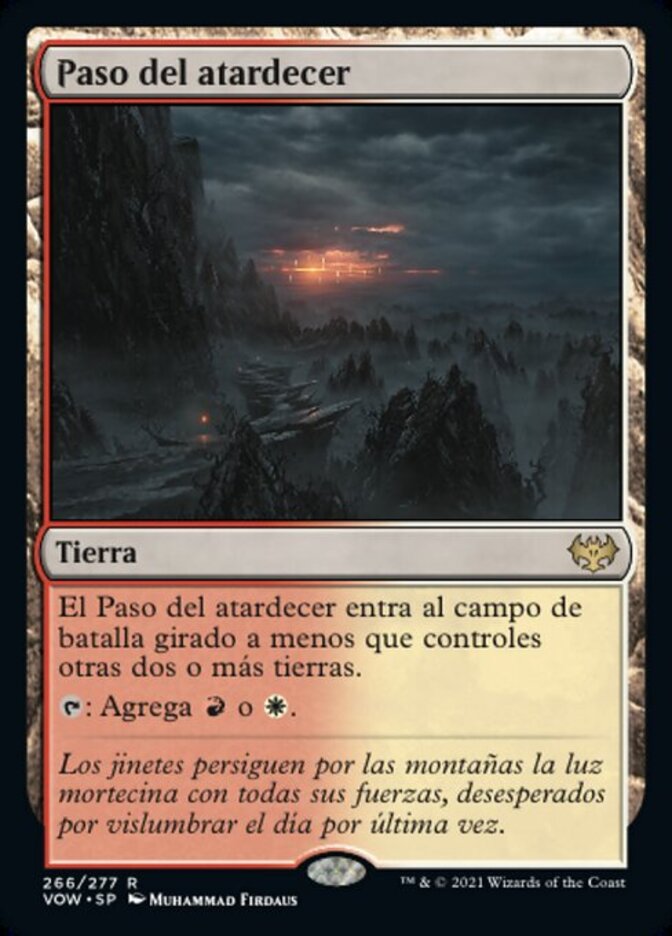 | Rules | Sundown Pass enters the battlefield tapped unless you control two or more other lands. : Add or . |