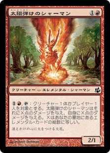 | Rules | , : Sunflare Shaman deals X damage to any target and X damage to itself, where X is the number of Elemental cards in your graveyard. |