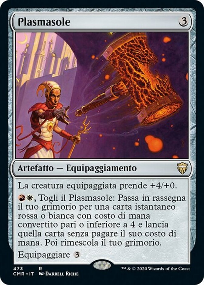 | Rules | Equipped creature gets +4/+0. , Unattach Sunforger: Search your library for a red or white instant card with mana value 4 or less and cast that card without paying its mana cost. Then shuffle. Equip |