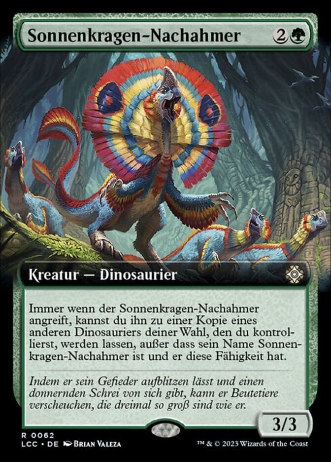 | Rules | Whenever Sunfrill Imitator attacks, you may have it become a copy of another target Dinosaur you control, except its name is Sunfrill Imitator and it has this ability. |