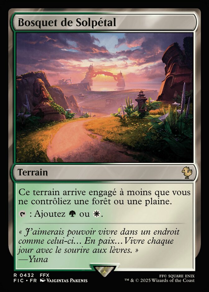 | Rules | Sunpetal Grove enters the battlefield tapped unless you control a Forest or a Plains. : Add or . |