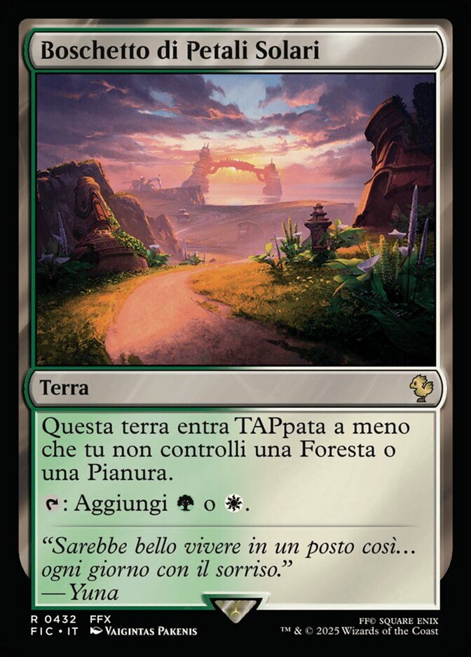 | Rules | Sunpetal Grove enters the battlefield tapped unless you control a Forest or a Plains. : Add or . |