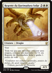 | Rules | Flying Whenever an opponent casts a spell, put a +1/+1 counter on Sunscorch Regent and you gain 1 life. |