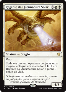 | Rules | Flying Whenever an opponent casts a spell, put a +1/+1 counter on Sunscorch Regent and you gain 1 life. |