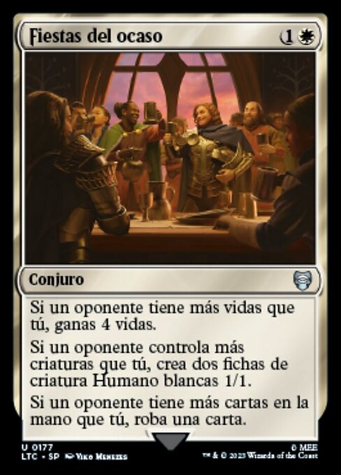 | Rules | If an opponent has more life than you, you gain 4 life. If an opponent controls more creatures than you, create two 1/1 white Human creature tokens. If an opponent has more cards in hand than you, draw a card. |
