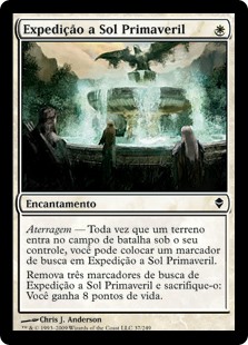 | Rules | Landfall — Whenever a land enters the battlefield under your control, you may put a quest counter on Sunspring Expedition. Remove three quest counters from Sunspring Expedition and sacrifice it: You gain 8 life. |