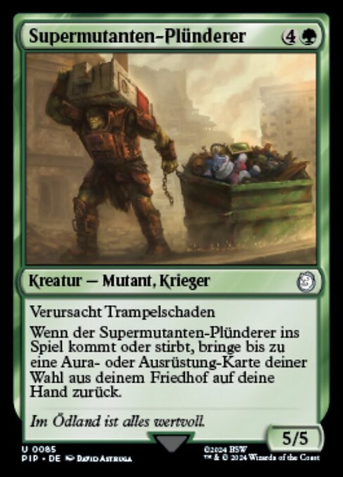 | Rules | Trample When Super Mutant Scavenger enters the battlefield or dies, return up to one target Aura or Equipment card from your graveyard to your hand. |