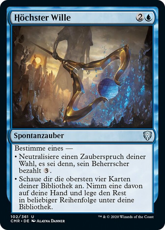 | Rules | Choose one — • Counter target spell unless its controller pays . • Look at the top four cards of your library. Put one of them into your hand and the rest on the bottom of your library in any order. |