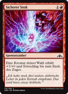 | Rules | Target creature gets +3/+0 and gains first strike until end of turn. |