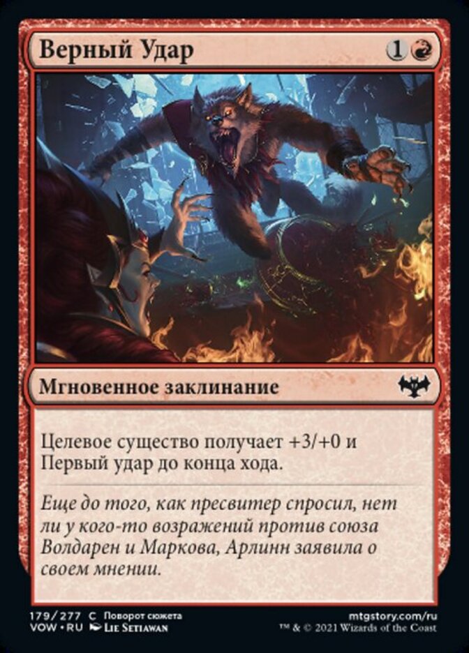 | Rules | Target creature gets +3/+0 and gains first strike until end of turn. |