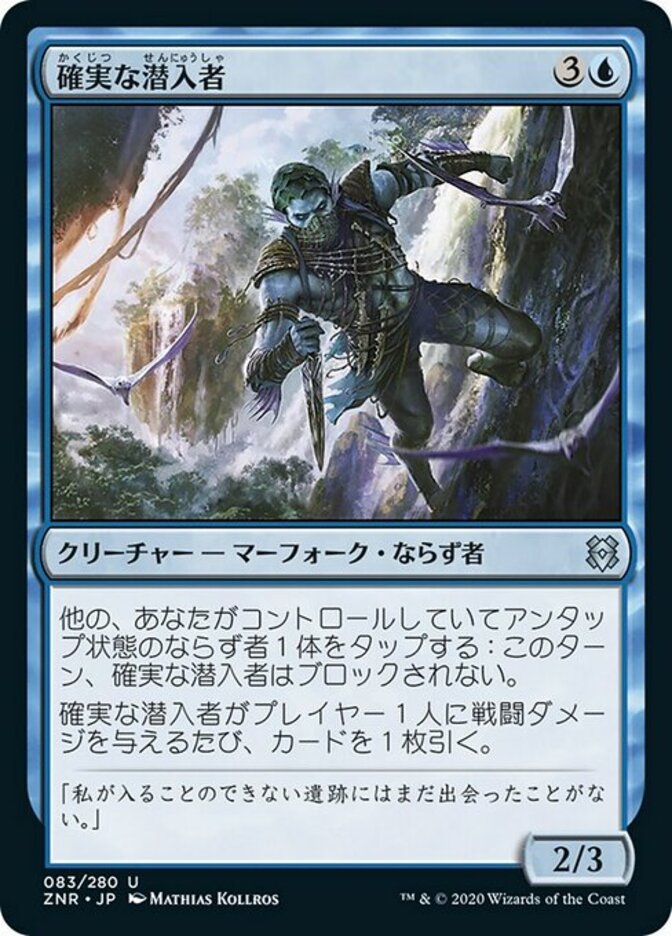 | Rules | Tap another untapped Rogue you control: Sure-Footed Infiltrator can't be blocked this turn. Whenever Sure-Footed Infiltrator deals combat damage to a player, draw a card. |
