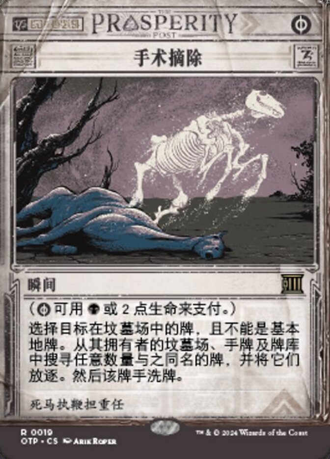 | Rules | ( can be paid with either or 2 life.) Choose target card in a graveyard other than a basic land card. Search its owner's graveyard, hand, and library for any number of cards with the same name as that card and exile them. Then that player shuffles. |