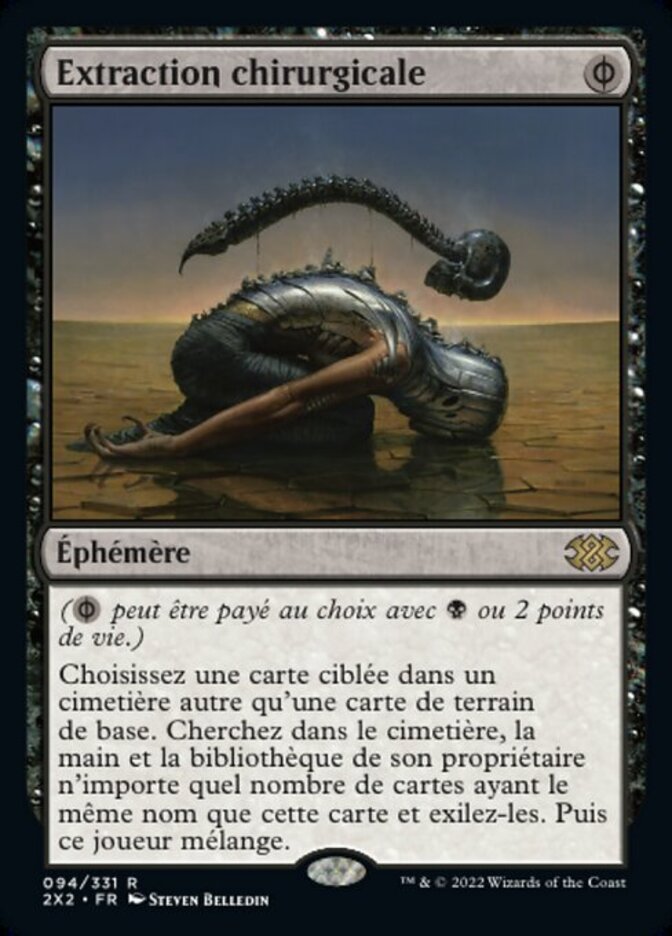 | Rules | ( can be paid with either or 2 life.) Choose target card in a graveyard other than a basic land card. Search its owner's graveyard, hand, and library for any number of cards with the same name as that card and exile them. Then that player shuffles. |