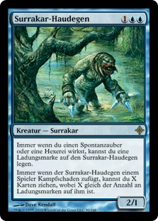 | Rules | Whenever you cast an instant or sorcery spell, you may put a charge counter on Surrakar Spellblade. Whenever Surrakar Spellblade deals combat damage to a player, you may draw X cards, where X is the number of charge counters on it. |