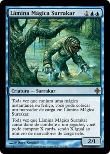 | Rules | Whenever you cast an instant or sorcery spell, you may put a charge counter on Surrakar Spellblade. Whenever Surrakar Spellblade deals combat damage to a player, you may draw X cards, where X is the number of charge counters on it. |