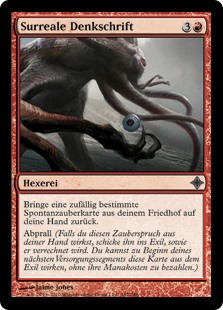 | Rules | Return an instant card at random from your graveyard to your hand. Rebound (If you cast this spell from your hand, exile it as it resolves. At the beginning of your next upkeep, you may cast this card from exile without paying its mana cost.) |