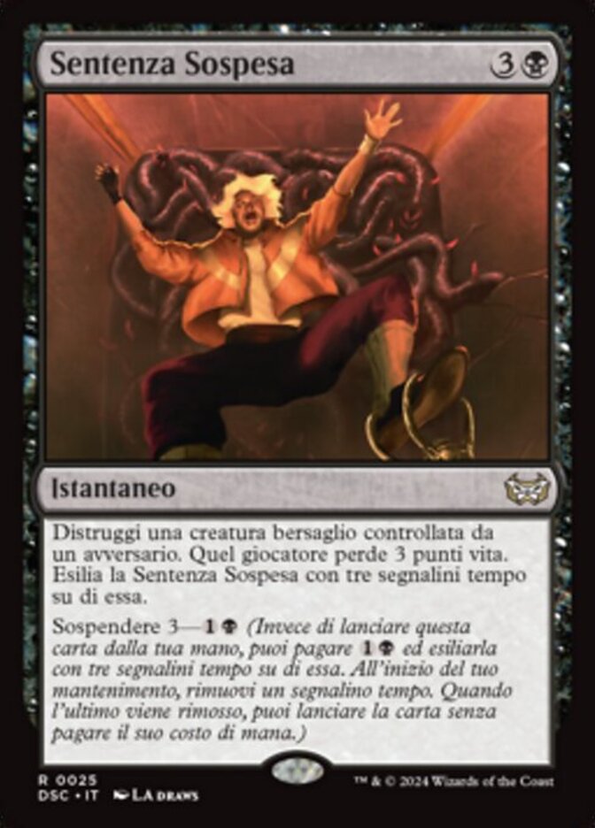 | Rules | Destroy target creature an opponent controls. That player loses 3 life. Exile Suspended Sentence with three time counters on it. Suspend 3— (Rather than cast this card from your hand, you may pay and exile it with three time counters on it. At the beginning of your upkeep, remove a time counter. When the last is removed, you may cast it without paying its mana cost.) |