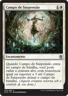| Rules | When Suspension Field enters the battlefield, you may exile target creature with toughness 3 or greater until Suspension Field leaves the battlefield. (That creature returns under its owner's control.) |