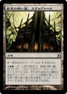 | Rules | : Add . : Until end of turn, Svogthos, the Restless Tomb becomes a black and green Plant Zombie creature with "This creature's power and toughness are each equal to the number of creature cards in your graveyard." It's still a land. |
