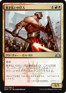 | Rules | Vigilance Whenever Swathcutter Giant attacks, it deals 1 damage to each creature defending player controls. |