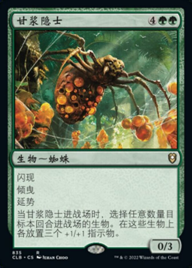 When Sweet-Gum Recluse enters the battlefield, put three +1/+1 counters on each of any number of target creatures that entered the battlefield this turn.