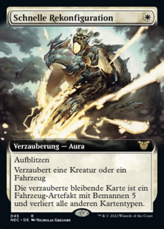 | Rules | Flash Enchant creature or Vehicle Enchanted permanent is a Vehicle artifact with crew 5 and it loses all other card types. (It's not a creature unless it's crewed.) |