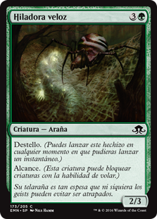 | Rules | Flash (You may cast this spell any time you could cast an instant.) Reach (This creature can block creatures with flying.) |