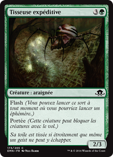 | Rules | Flash (You may cast this spell any time you could cast an instant.) Reach (This creature can block creatures with flying.) |