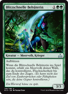 | Rules | Flash When Swift Warden enters the battlefield, target Merfolk you control gains hexproof until end of turn. (It can't be the target of spells or abilities your opponents control.) |