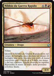 | Rules | Flying When Swift Warkite enters the battlefield, you may put a creature card with mana value 3 or less from your hand or graveyard onto the battlefield. That creature gains haste. Return it to your hand at the beginning of the next end step. |