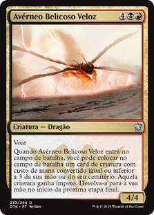 | Rules | Flying When Swift Warkite enters the battlefield, you may put a creature card with mana value 3 or less from your hand or graveyard onto the battlefield. That creature gains haste. Return it to your hand at the beginning of the next end step. |