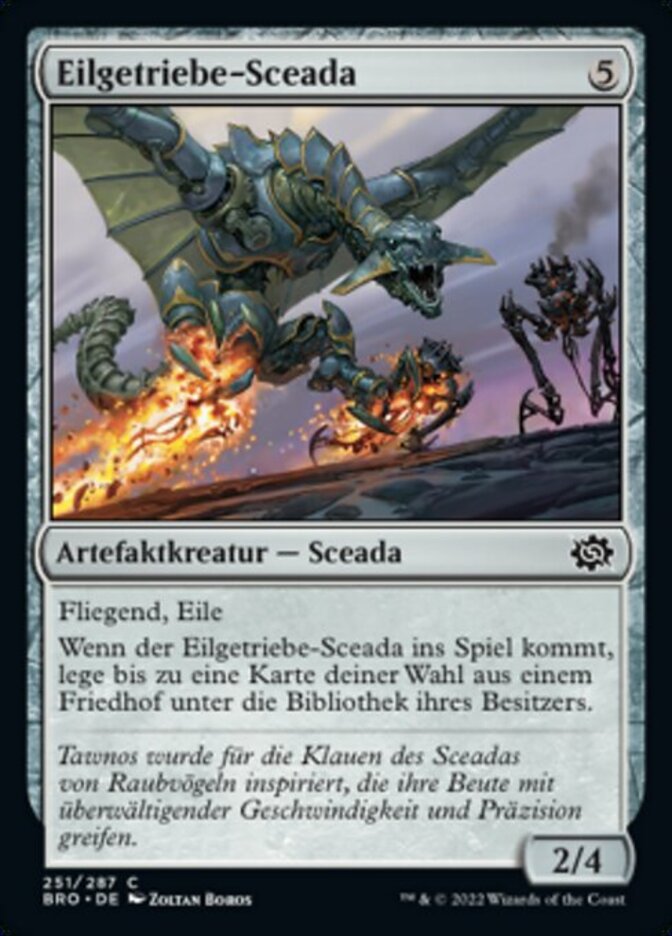 | Rules | Flying, haste When Swiftgear Drake enters the battlefield, put up to one target card from a graveyard on the bottom of its owner's library. |
