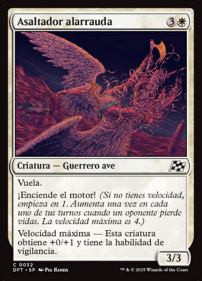 | Rules | Flying Start your engines! (If you have no speed, it starts at 1. It increases once on each of your turns when an opponent loses life. Max speed is 4.) Max speed — This creature gets +0/+1 and has vigilance. |