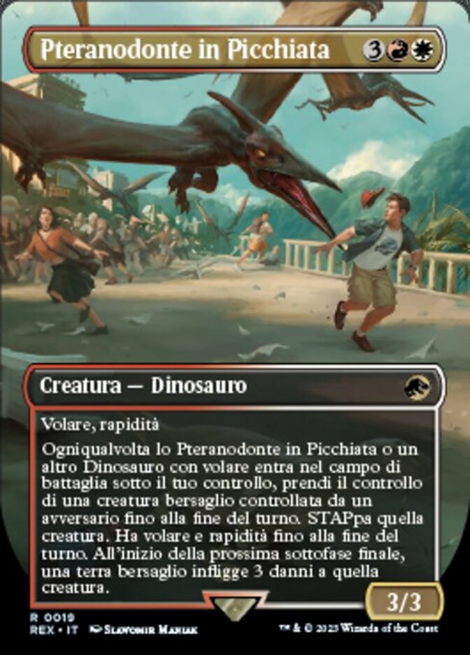 Whenever Swooping Pteranodon or another Dinosaur with flying enters the battlefield under your control, gain control of target creature an opponent controls until end of turn. Untap that creature. It gains flying and haste until end of turn. At the beginning of the next end step, target land deals 3 damage to that creature.