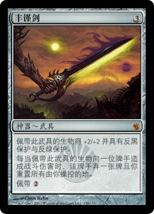 | Rules | Equipped creature gets +2/+2 and has protection from black and from green. Whenever equipped creature deals combat damage to a player, that player discards a card and you untap all lands you control. Equip |