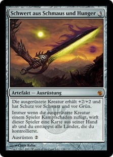 | Rules | Equipped creature gets +2/+2 and has protection from black and from green. Whenever equipped creature deals combat damage to a player, that player discards a card and you untap all lands you control. Equip |