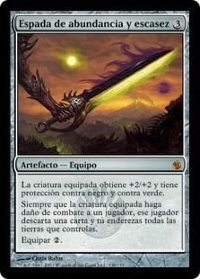 | Rules | Equipped creature gets +2/+2 and has protection from black and from green. Whenever equipped creature deals combat damage to a player, that player discards a card and you untap all lands you control. Equip |