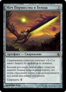 | Rules | Equipped creature gets +2/+2 and has protection from black and from green. Whenever equipped creature deals combat damage to a player, that player discards a card and you untap all lands you control. Equip |