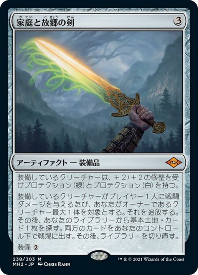 | Rules | Equipped creature gets +2/+2 and has protection from green and from white. Whenever equipped creature deals combat damage to a player, exile up to one target creature you own, then search your library for a basic land card. Put both cards onto the battlefield under your control, then shuffle. Equip |