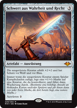 | Rules | Equipped creature gets +2/+2 and has protection from white and from blue. Whenever equipped creature deals combat damage to a player, put a +1/+1 counter on a creature you control, then proliferate. (Choose any number of permanents and/or players, then give each another counter of each kind already there.) Equip |