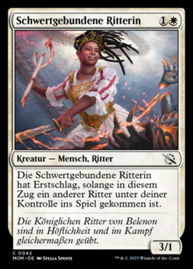 | Rules | Swordsworn Cavalier has first strike as long as another Knight entered the battlefield under your control this turn. |