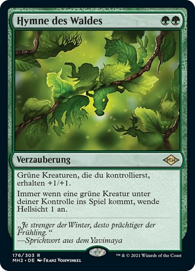 | Rules | Green creatures you control get +1/+1. Whenever a green creature enters the battlefield under your control, scry 1. |