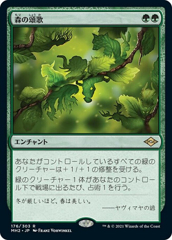 | Rules | Green creatures you control get +1/+1. Whenever a green creature enters the battlefield under your control, scry 1. |