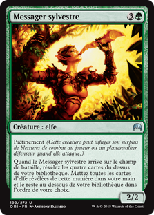 | Rules | Trample (This creature can deal excess combat damage to the player or planeswalker it's attacking.) When Sylvan Messenger enters the battlefield, reveal the top four cards of your library. Put all Elf cards revealed this way into your hand and the rest on the bottom of your library in any order. |