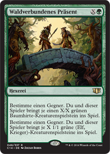 | Rules | Choose an opponent. You and that player each create an X/X green Treefolk creature token. Choose an opponent. You and that player each create X 1/1 green Elf Warrior creature tokens. |