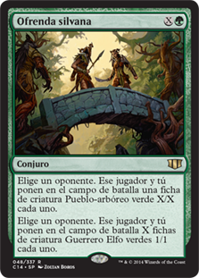 | Rules | Choose an opponent. You and that player each create an X/X green Treefolk creature token. Choose an opponent. You and that player each create X 1/1 green Elf Warrior creature tokens. |