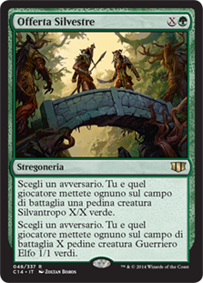 | Rules | Choose an opponent. You and that player each create an X/X green Treefolk creature token. Choose an opponent. You and that player each create X 1/1 green Elf Warrior creature tokens. |