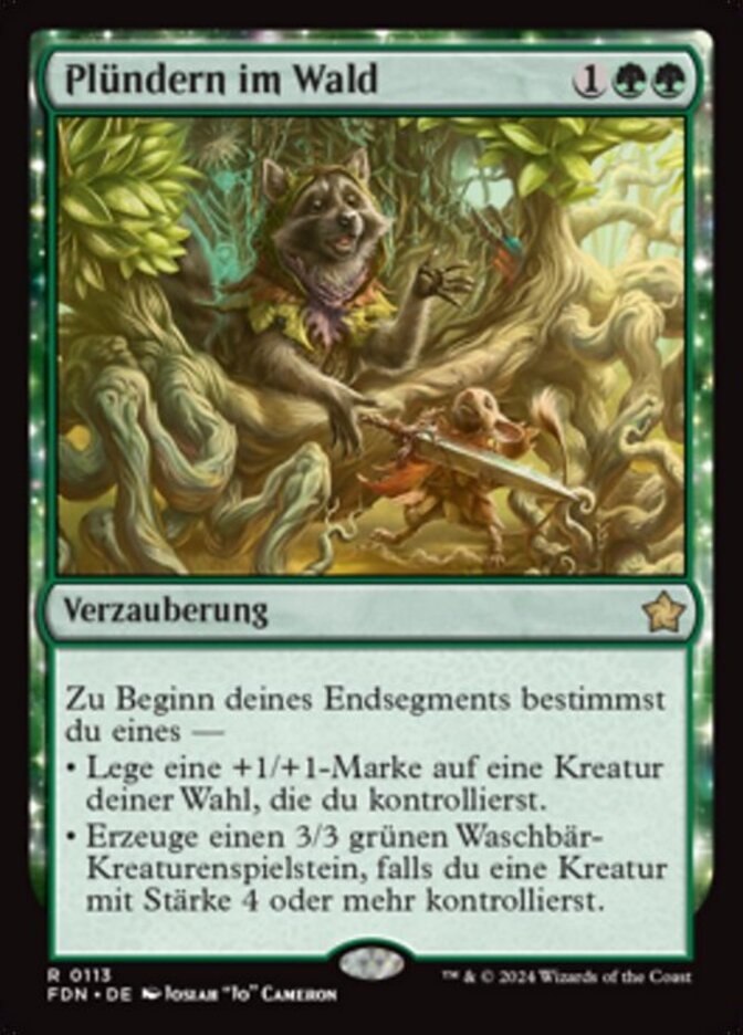 | Rules | At the beginning of your end step, choose one — • Put a +1/+1 counter on target creature you control. • Create a 3/3 green Raccoon creature token if you control a creature with power 4 or greater. |